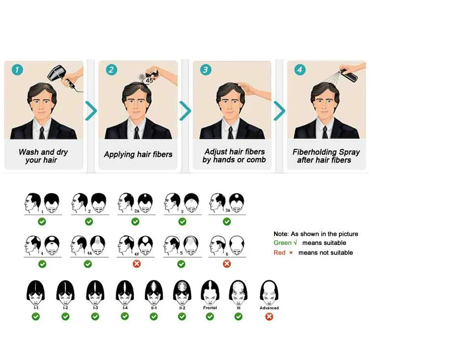 Natürliches Ergebnis – aus farbigen, statisch geladenen Keratinfasern hergestellt, die wie echtes Haar aussehen.
