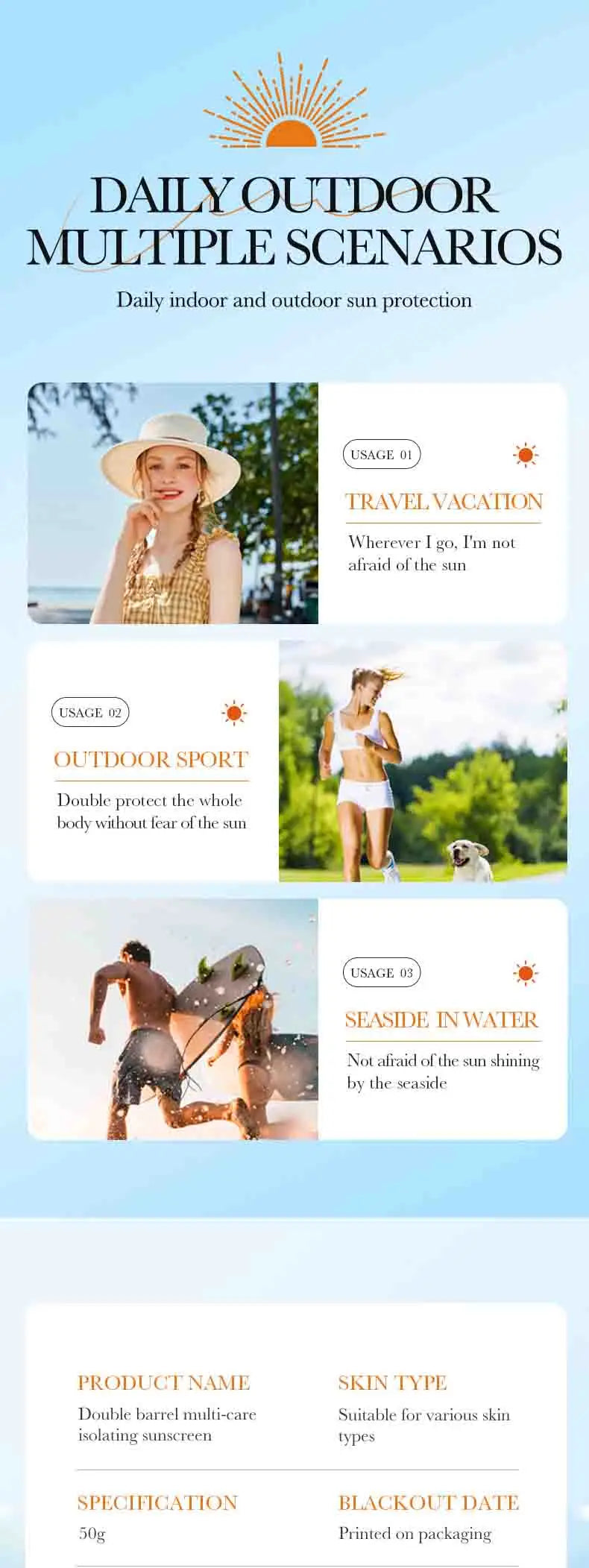 Spf 50+ Sunscreen For Face Protector Solar skincare Dual Tube Multi Effect Pa+++ Facial Sunscreen Solar Blocker