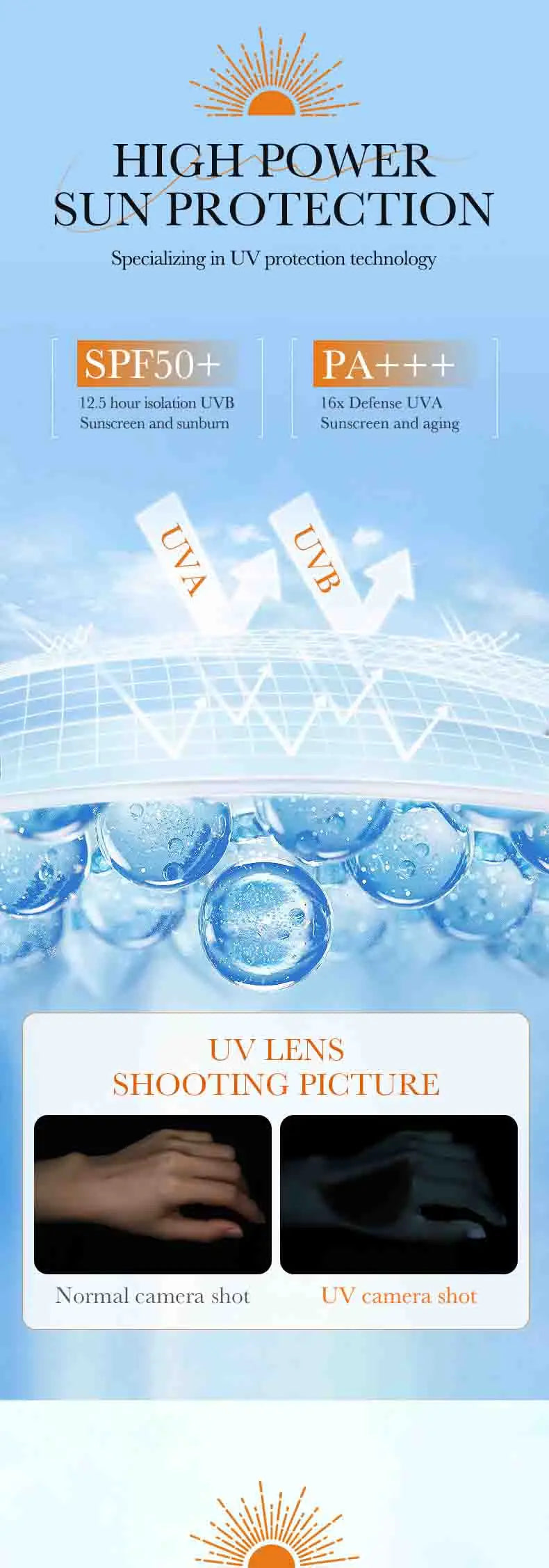 Hoher UV-Schutz: SPF 50+ und PA+++ schützen vor UVA- und UVB-Strahlen.